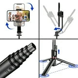 Kingjoy M080P Phone Tripod, Tripod for iPhone & Selfie Stick Tripod with Remote, Extendable Phone Tripod Stand & Travel Tripod, Solidest Cell Phone Tripod Compatible with iPhone/Android